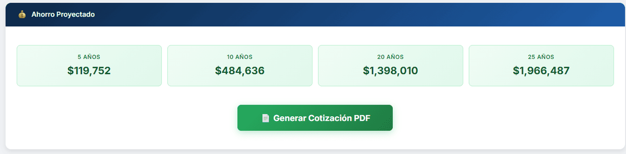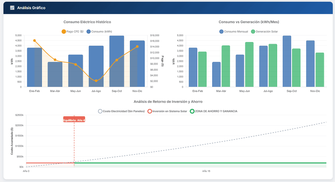 Muestra a tus clientes el valor real de su inversión con proyecciones visuales claras. No más explicaciones técnicas confusas; deja que los datos hablen por ti.